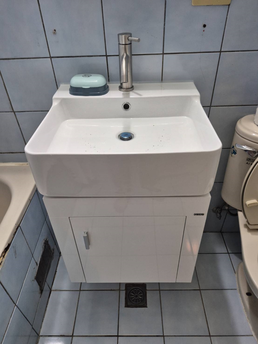 商品類型:FC-002 50公分單門方形防水鋼烤浴櫃組|極簡小空間洗手台櫃・防潮耐用