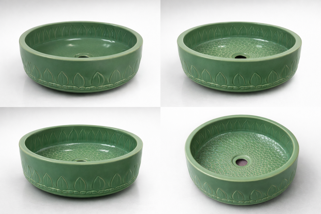 蓮葉刻花陶瓷面盆